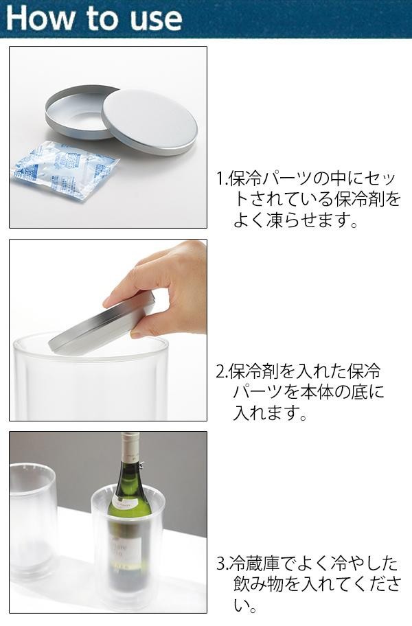 | 氷や水を使わずにワインやシャンパンの冷たさをキープします。ボトルや周りを濡らさないので、後片付けも簡単♪ |