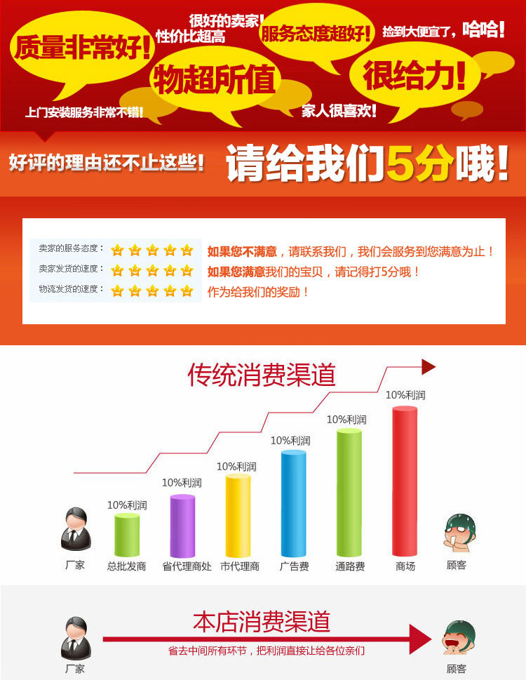 3, if the quality problem, we accept returns, never drag excuses. Please after closing all pro-fifth of praise, do not accept any form of negative feedback, like to the Poor Customer mercy.