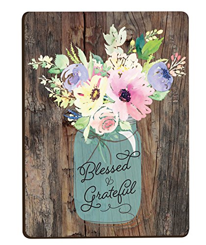 Blessed & Grateful Floral Mason Jar Wood Look 3 x 4 Inch Wood Lithograph Magnet