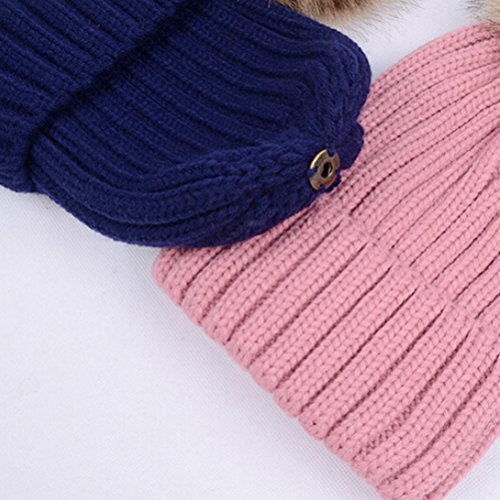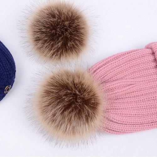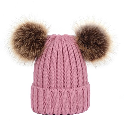 Package Including 1 x Winter Knit Beanie Bobble Hat Cap with Double Pom Pom Ears for Women Girls (Pink) 0