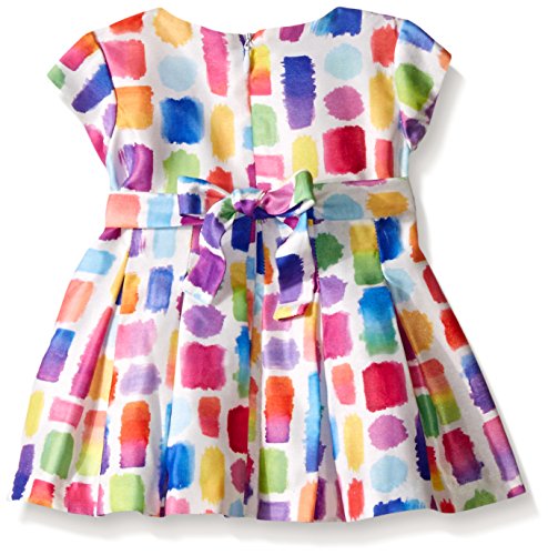 Short sleeve multicolored abstract printed shantung dress