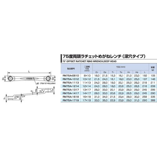 ●75度の角度でオフセットしている為、障害物を避けての作業が容易。