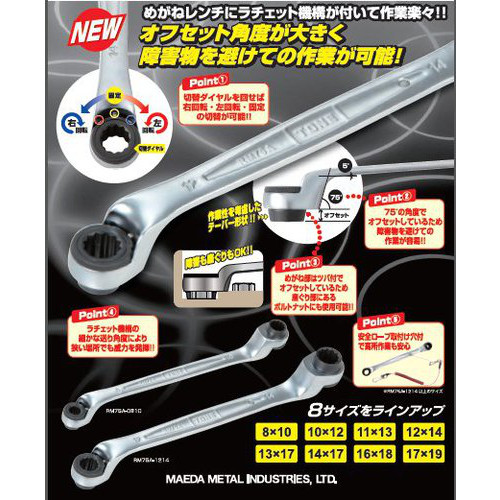 ●めがねレンチにラチェット機構が付いて作業楽々。