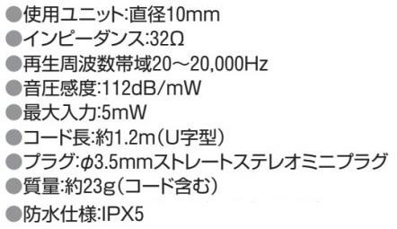 fk094igrjs防雨(IPX5)仕様ですので、雨や汗を気にせず使用できます外れにくいネックバンド式ですので、スポーツやトレーニングに最適ですサイズ個装サイズ:21×14×5cm重量個装重量:80g付属品交換用イヤーピース(S/M/L・各2個)製造国中国外れにくいネックバンド方式!防雨(IPX5)仕様ですので、雨や汗を気にせず使用できます外れにくいネックバンド式ですので、スポーツやトレーニングに最適です