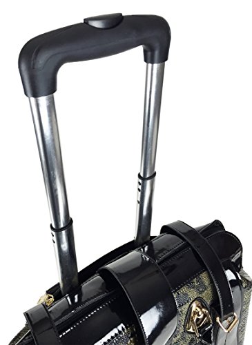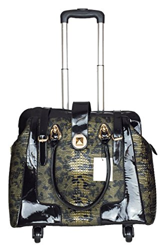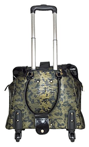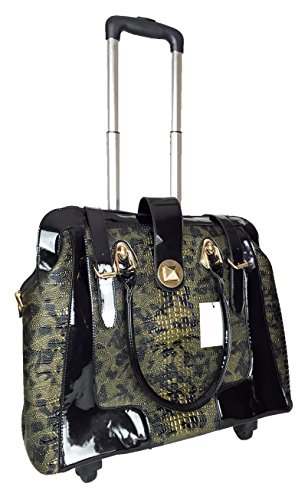 -. Binding : Electronics -. Brand : Trendy Flyer -. Color : Green, Black -. EAN : 0746839982888 -. Feature : Color: Olive Green and Black / Material: Polyurethane/ Pattern: Croc / Animal / Size: 17" H (include wheel) x 18" L x 8" W/ Weight: 6.5 lbs / Padded laptop area can fit laptop 12" wide, 9.5" tall and 2" thick using securing velcro straps / Padded laptop area can fit laptop 12" wide, 12.5" tall and 2" thick without using securing velcro straps / Additional Info: Height From Top of Handle to Floor with Handle Fully Extended: 38" -. Label : P.R.Ivate -. Manufacturer : P.R.Ivate -. PackageQuantity : 1 -. ProductGroup : PC Accessory -. ProductTypeName : CARRYING_CASE_OR_BAG -. Publisher : P.R.Ivate -. Studio : P.R.Ivate -. Title : Trendy Flyer 17" L Computer/Laptop Carry Bag Duffel Rolling 4Wheel Spinner Lage Croc Green -. UPC : 746839982888