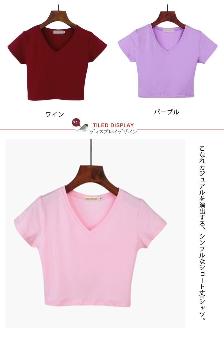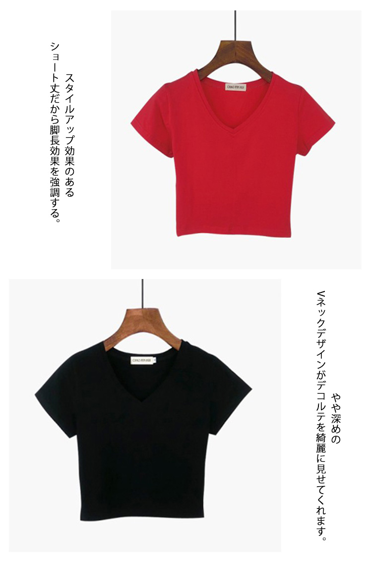 | こなれカジュアルを演出する、シンプルなショート丈tシャツ。スタイルアップ効果のあるショート丈だから脚長効果を強調する。やや深めのVネックデザインがデコルテを綺麗に見せてくれます。トレンドのワイドパンツやスカーチョとも相性が良く、デイリーに大活躍のアイテムです☆1枚で着てもスタイリッシュに着まる☆色違いでも持ちたい1枚です! | |
