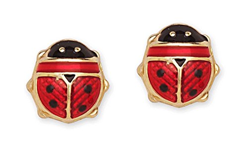 Make her wishes come true with these lucky ladybug stud earrings. Ladybugs, also called ladybirds, are closely associated with luck and good fortune, making these stud earrings into a lovely and symbolic choice for your little girl. Made in the USA with a high quality finish, these ladybug earrings are expertly crafted from 14K yellow gold. The ladybug shape is beautifully detailed in red and black enamel to create an instantly recognizable look. These gold stud earrings measure 7mm wide x 8mm height to neatly fit a child's ear, or for a subtle yet quirky look for a woman. The earrings fasten with a standard friction back closure for a comfortable fit. These yellow gold and red enamel ladybug earrings combine quality materials and exceptional craftsmanship that ensures they will be enjoyed for years to come. The lucky ladybird design makes them into a fantastic gift for a birthday, anniversary, name-day or simply to make that important young lady smile!