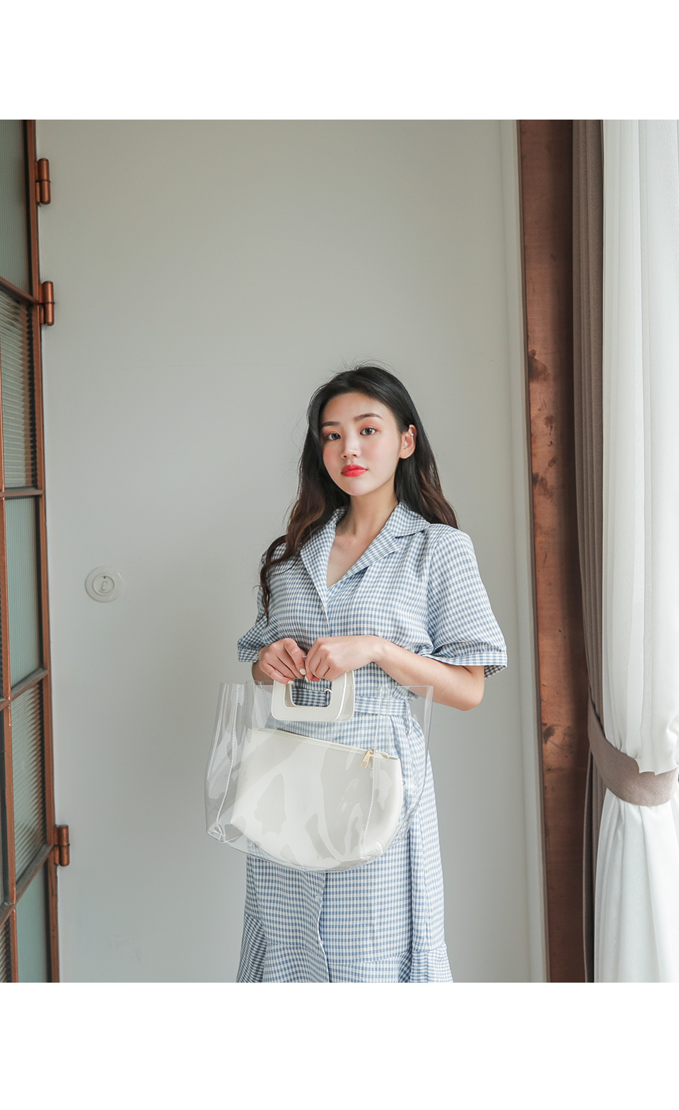 チェックのパターンと内蔵されたベルトが洗練されて見えたよん!