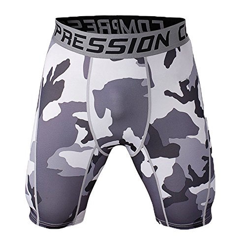 WELEN MEN SPORTS RUNNING PRINT COMPRESSION UNDER BASE LAYER SHORTS (S, GRAY WHITE)