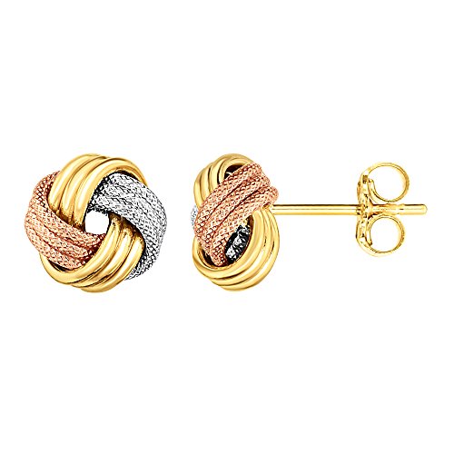 These endearing love knot earrings highlight a true symbol of unlimited eternal and unconditional love. Finely crafted in 14K 3 tone gold, these earrings are lightweight and you do not even notice that they are even there when you are wearing them. The earrings come in a complimentary gift box.Feature