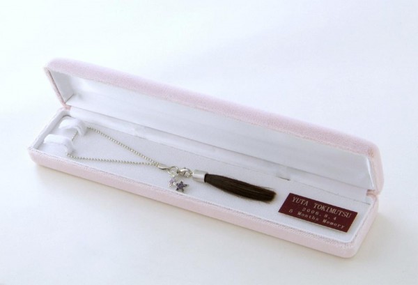 【商品お届けまでの流れ】 (1)ご注文 (2)メーカーより引換券、申込用紙、髪の毛のカットの方法、返信用封筒をお送りさせていただきます。 (3)申込用紙に必要事項をご記入の上、「引換券、申込用紙」を同送の返信用封筒にて髪の毛と一緒にご返送ください。 (4)誕生記念筆を製作させていただきます。 (5)約2ヶ月でお届けいたします。