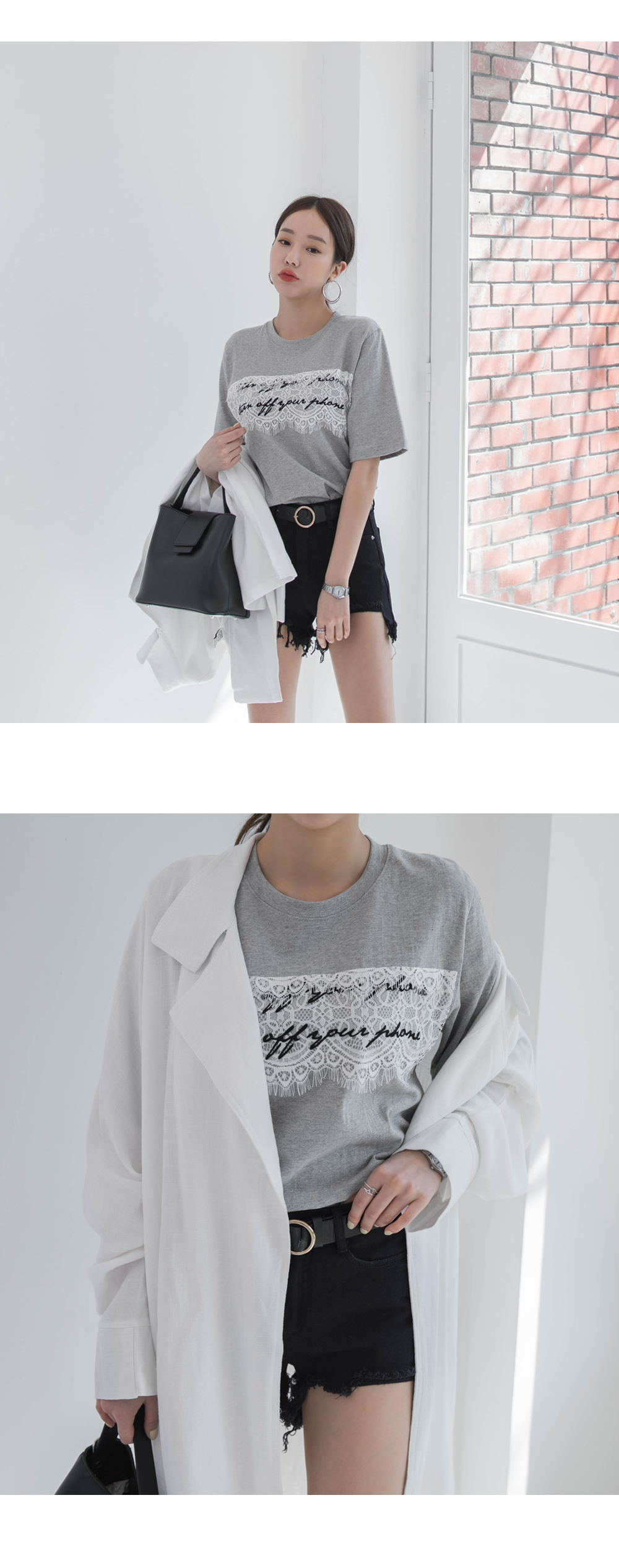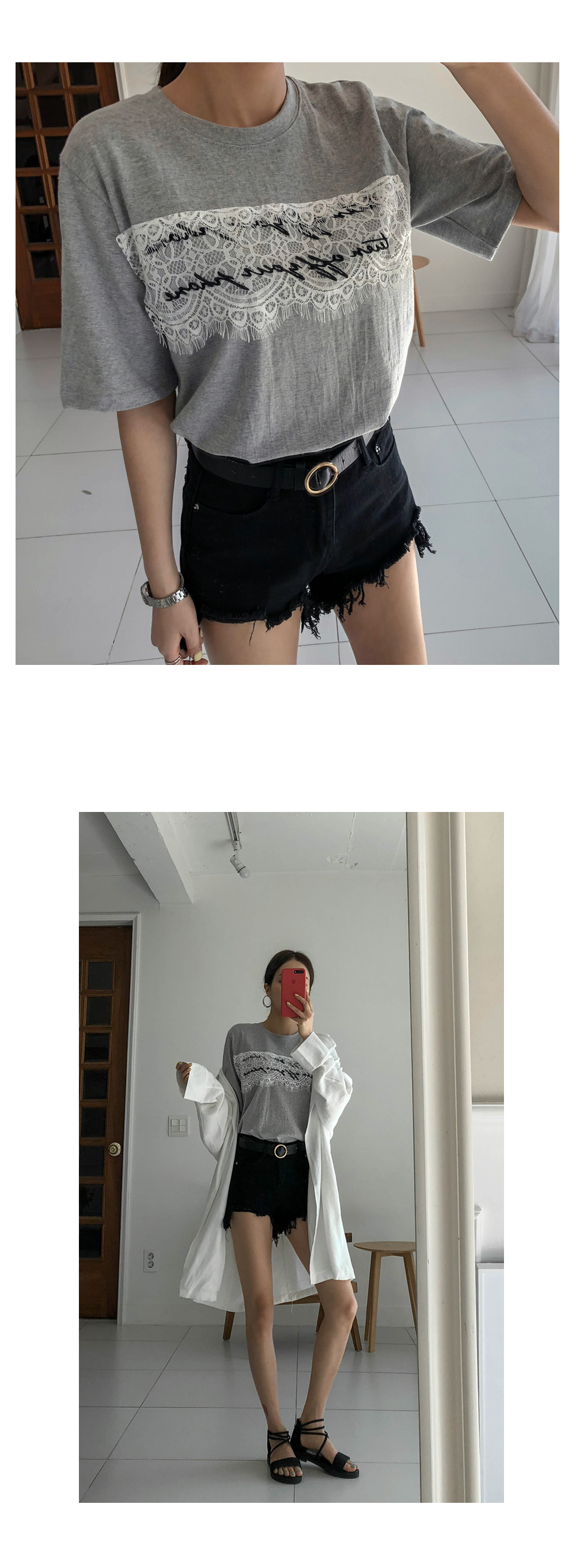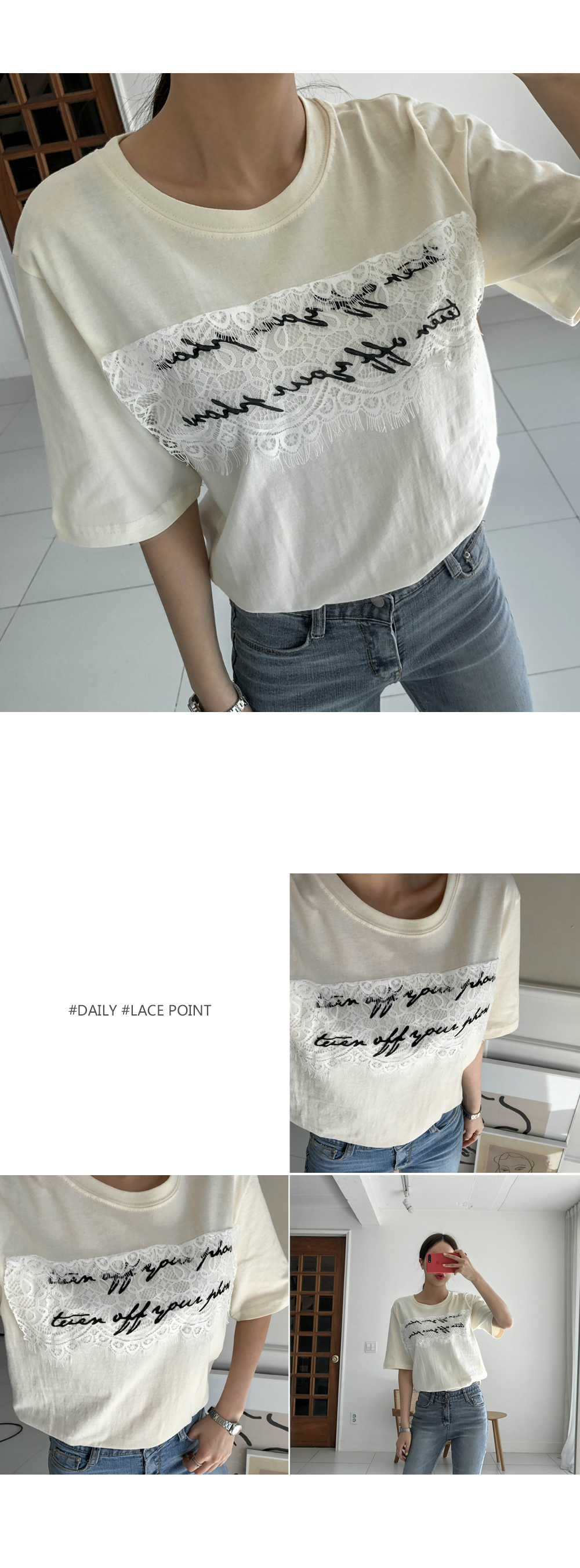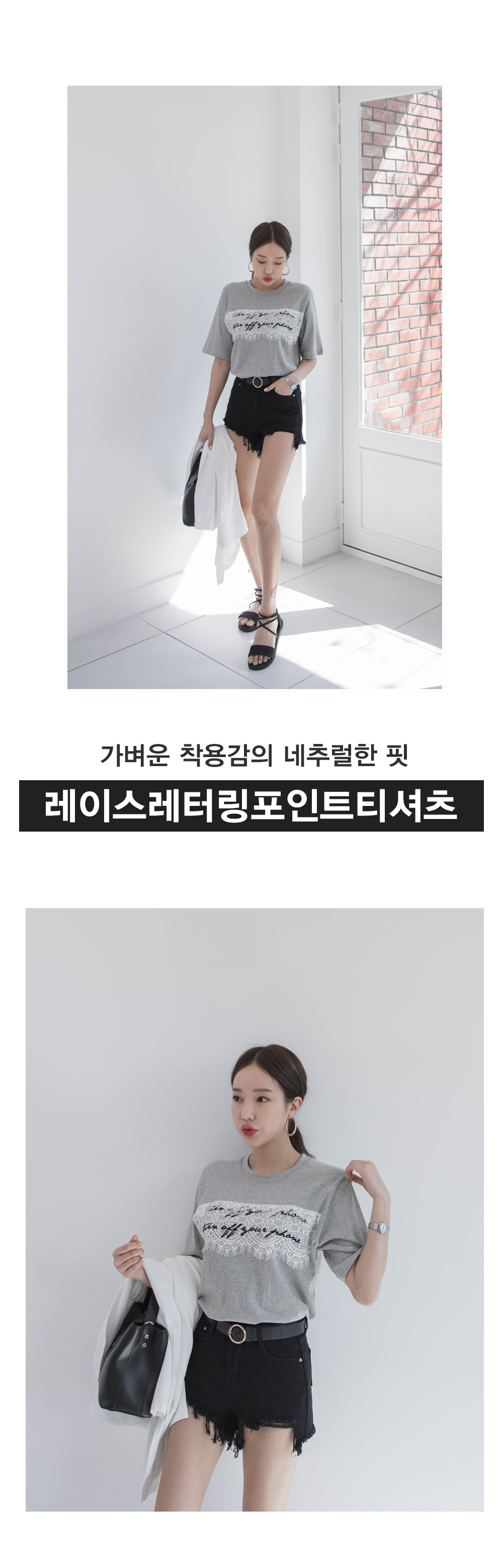 루즈한 핏의 레이스가 포인트인 레터링 티셔츠에요~