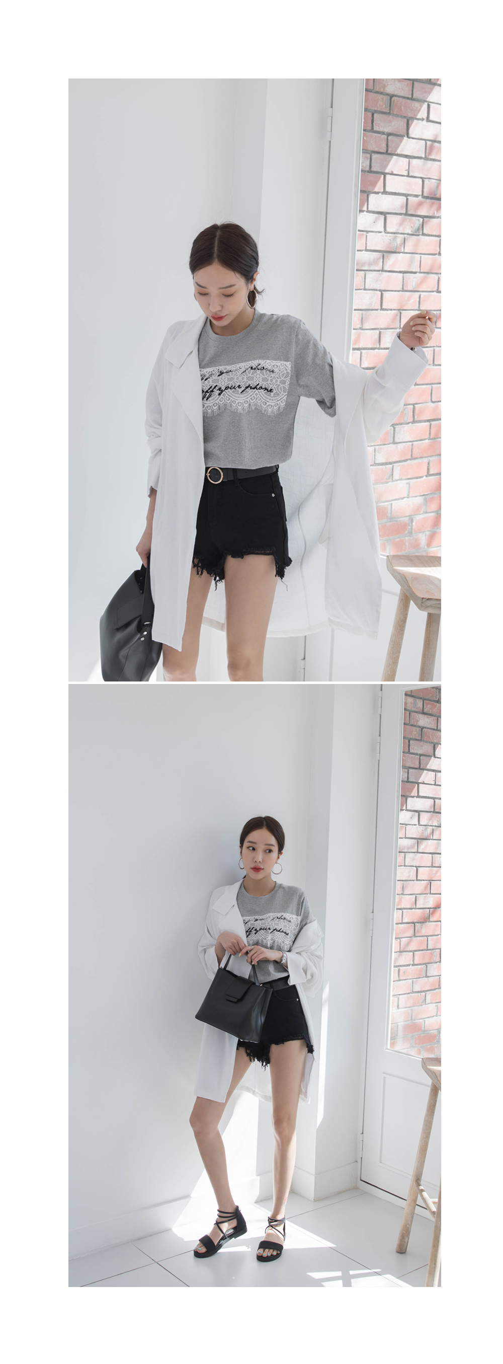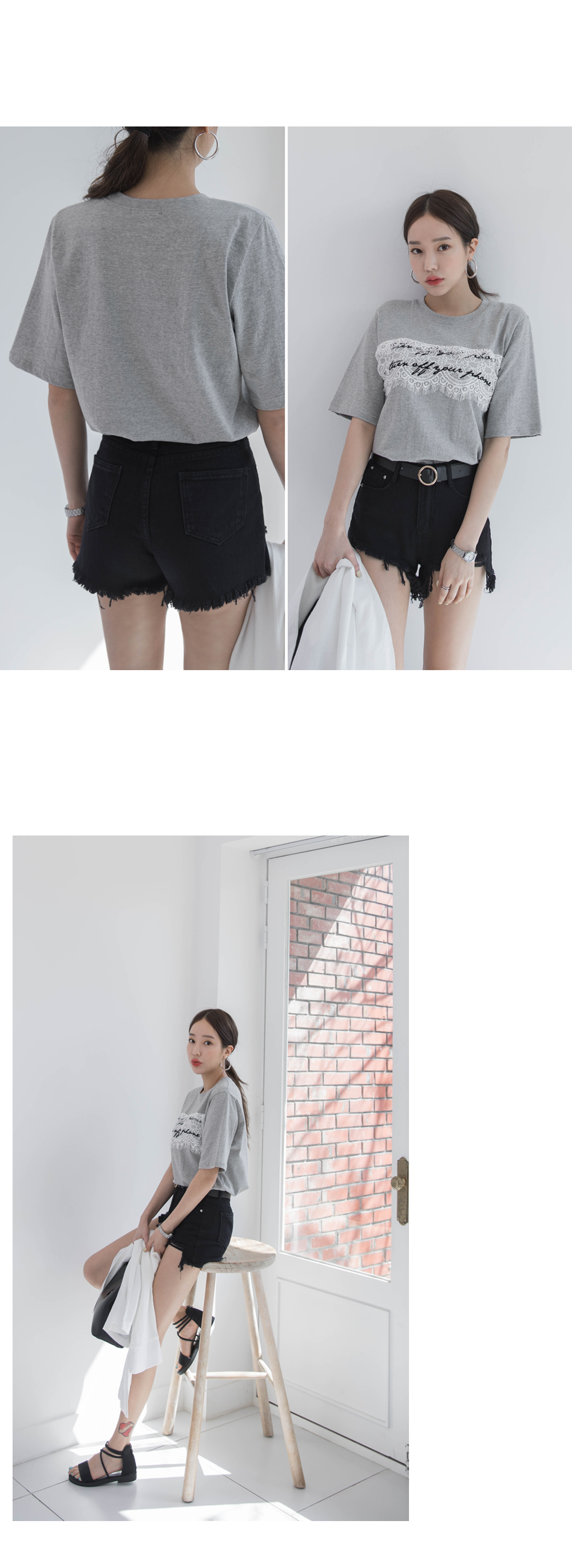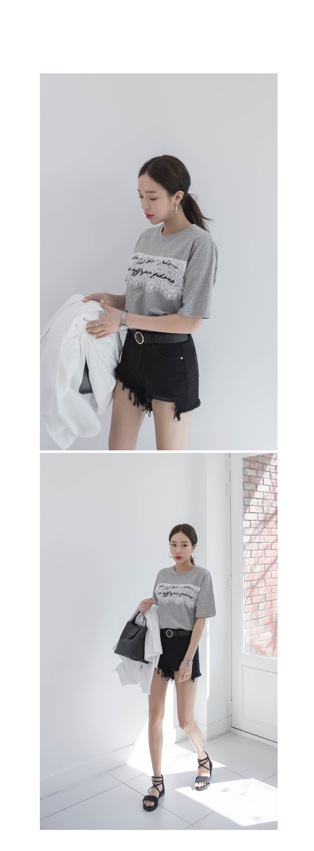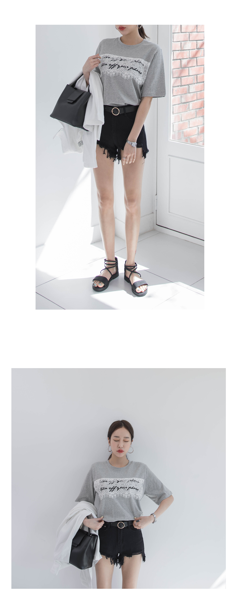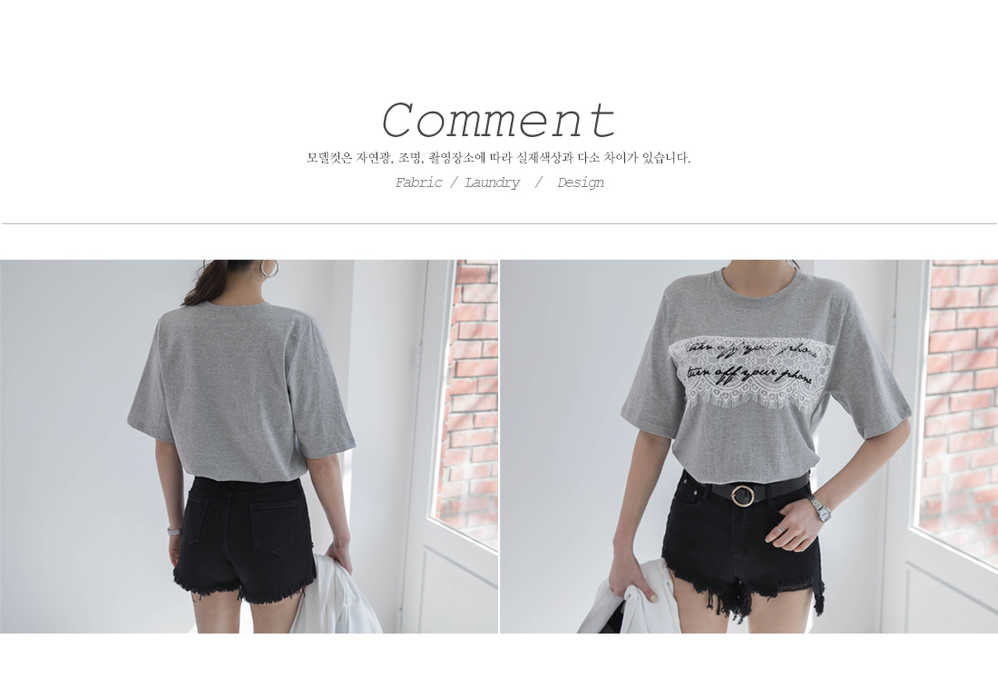 루즈한 핏의 레이스가 포인트인 레터링 티셔츠에요~