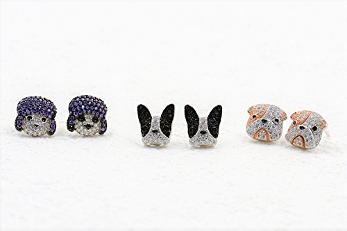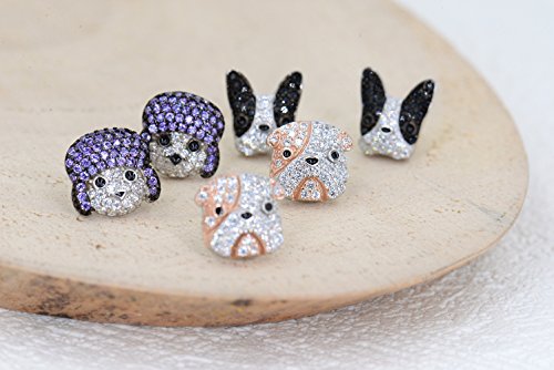 These animal earrings are made of sterling silver 925, plated in white gold, paved with very shinny colored cz stones. A great holiday gift especially for pet lovers.