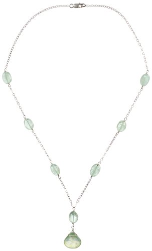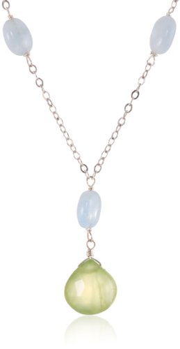 The subtle colors of this gemstone drop necklace make it such a versatile accessory. Stationed along a 17-inch sterling silver cable chain are oval beads of pale blue aquamarine, the birthstone for March. The necklace is tipped with a teardrop shape of translucent prehnite, a beautiful gemstone with a light wash of yellow-green color. This graceful necklace is easy to dress up or down and goes with plenty of outfits. It's finished with a sterling silver lobster-claw clasp.
