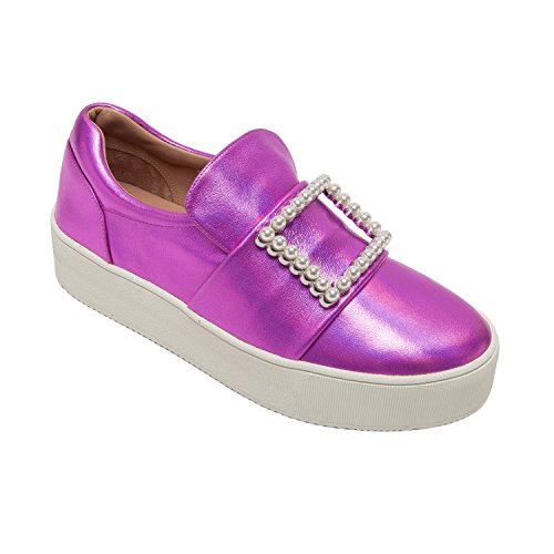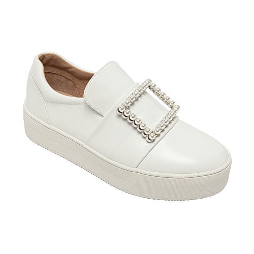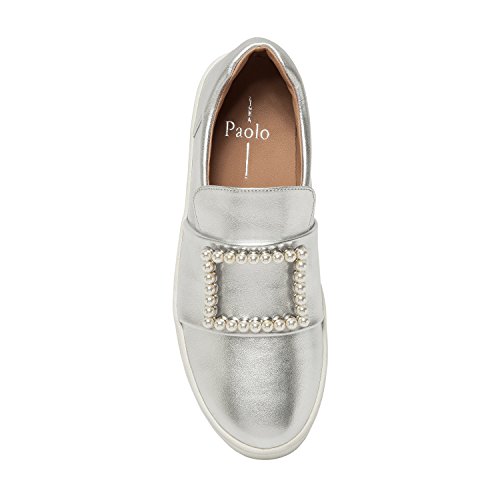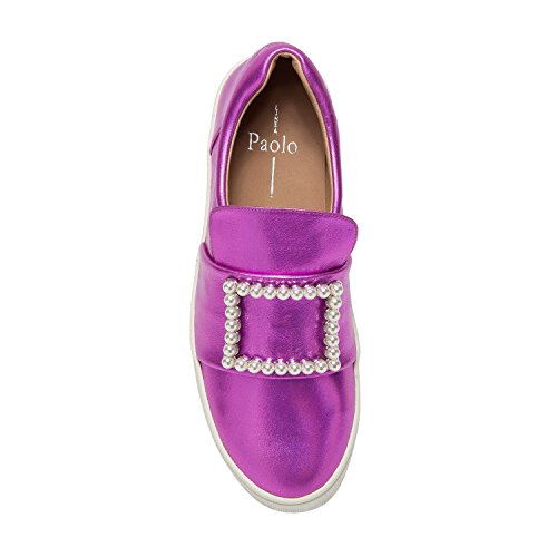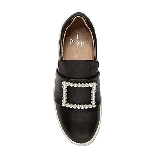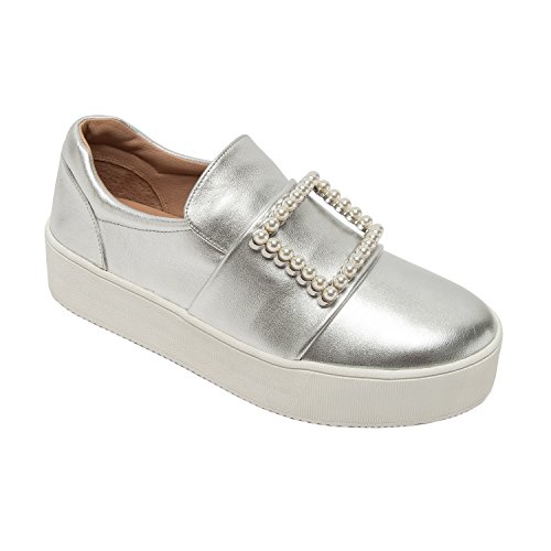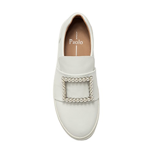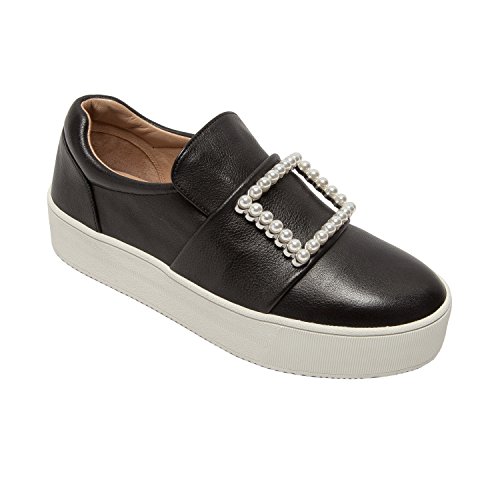 Binding : Apparel Product Description A faux pearl embellished buckle adds an unexpected elegant touch to this on-trend leather platform sneaker. With a luxe leather upper and a padded contoured topline with loafer-inspired vamp, Val walks the line between streetwear style and preppy princess. Casual meets classy in this fresh, feminine interpretation of a leisure-time classic. Linea Paolo designs women's fashion footwear featuring on trend styling, superior comfort and luxury details. Discerning fashionistas have stocked their wardrobes with our sophisticated collection of salon quality sandals, shoes, and boots since 2002. From runway ready to casual chic, Linea Paolo has a handcrafted "it" shoe for every occasion. Linea Paolo - we speak to your style. 0