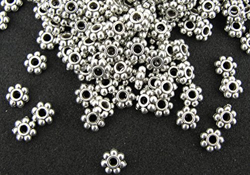 Beads Direct USA Spacer Beads Daisy Flower Spacers 5mm x 2mm 300 Pcs (Silver Tone)