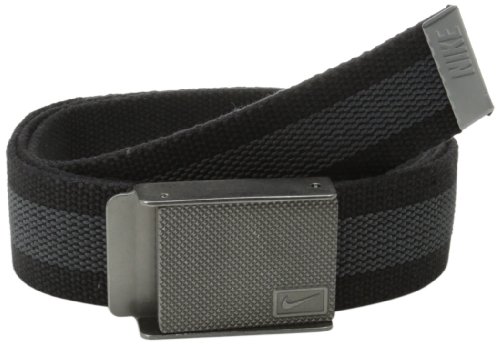 -. Binding : Accessory -. Brand : Nike -. Department : mens -. Feature : Woven rubber reverses to solid color giving you two ways to wear belt Antique silver clamp plaque buckle with engraved texture and Nike swoosh logo / Beverage opener on back of buckle Nike personalized fit technology so you can cut and customize the length of your belt for ultimate comfort 388 mm width One size fits up to size 44 -. Label : Nike Men's Belts -. Manufacturer : Nike Men's Belts -. Model : 11198247 -. MPN : 11198247 -. PackageQuantity : 1 -. PartNumber : 11198247 -. ProductGroup : Apparel -. ProductTypeName : ACCESSORY -. Publisher : Nike Men's Belts -. Studio : Nike Men's Belts -. Title : Nike Men's Rubber Inlay Reversible Web Belt