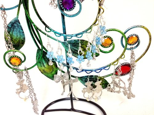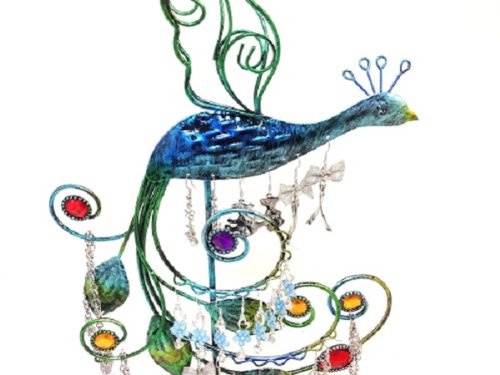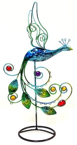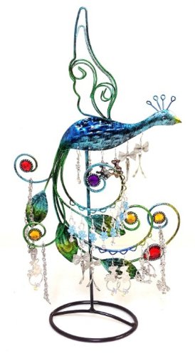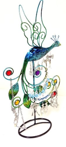 Bejeweled Display Peacock with Multi Color Stone Earring Tree~Holder~Organize ~Jewelry Display w/ Gift Box