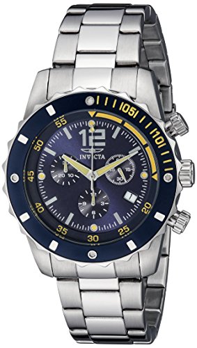 -. Binding : Watch -. Brand : Invicta -. Color : Silver -. Department : mens -. EAN : 0843836012461 -. Feature : Swiss Quartz movement / Flame fusion crystal; Brushed and polished stainless steel case and bracelet / Chronograph functions with 60 second, 30 minute and 12 hour subdials; Date function / Blue dial with silver tone and yellow hands, hour markers and arabic numerals; Stainless steel unidirectional bezel with blue ring / Water resistant to 330 feet (100 M): suitable for snorkeling, as well as swimming, but not diving -. Label : Invicta -. Manufacturer : Invicta -. Model : 1246 -. MPN : 1246 -. PackageQuantity : 1 -. PartNumber : 1246 -. ProductGroup : Watch -. ProductTypeName : WATCH -. Publisher : Invicta -. Studio : Invicta -. Title : Invicta Men's 1246 II Collection Chronograph Blue Dial Stainless Steel Watch -. UPC : 843836012461