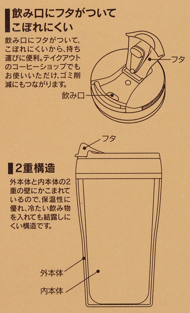It is surrounded by double walls of the inner body and the outer body, so it is excellent in warmth retaining structure, and condensation is difficult to occur even when a cold drink is put in