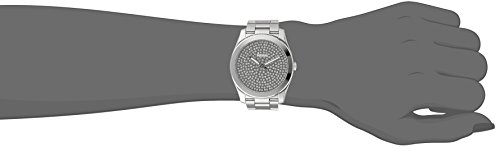 - Feature : Round watch in silver tone featuring notched bezel and logoed dial decorated with crystals / 39 mm stainless steel case with mineral dial window / Quartz movement with analog display / Stainless steel three-link bracelet with deployant-clasp closure / Water resistant to 50 m (165 ft)