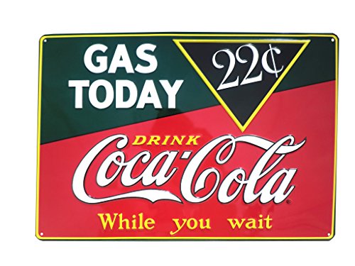 Drink Coca Cola Coke Gas Today 22 Cents Tin Sign 11 x 15in
