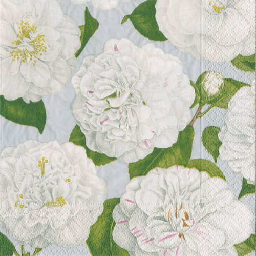 Entertaining with Caspari 14112D Camellia Garden Silver Napkin Dinner, Multicolor