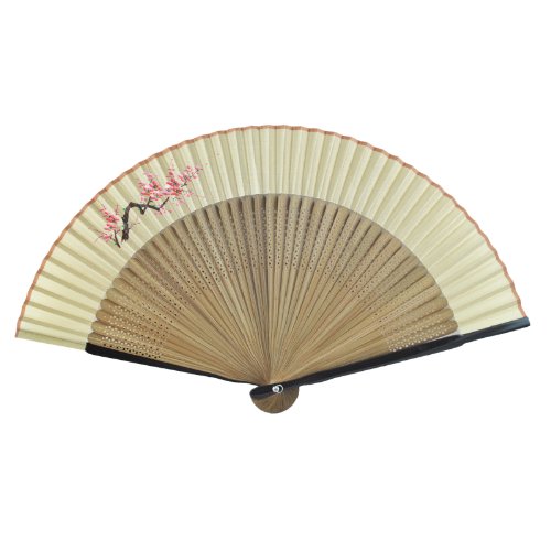 Bamboo Folding Fan - Hand Painted Plum Blossom - Yellow