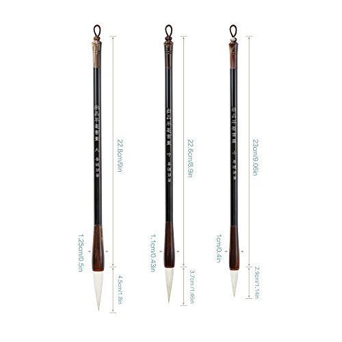 HULYTRAAT Gift Series CCBS1 Chinese Calligraphy Sumi Brush Set with Case(Black, Set of 3)