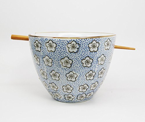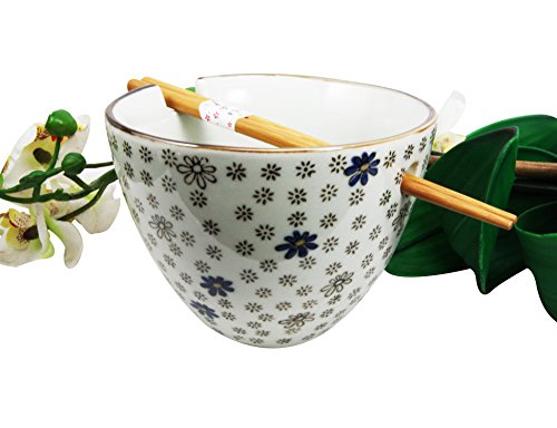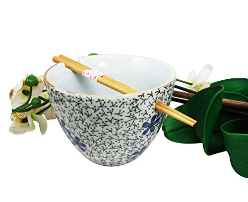 This beautiful ceramic soup bowl comes with a pair of wooden chopsticks. Feast on your favorite ramen noodles in a stylish Bowl with a built in chopsticks rest.