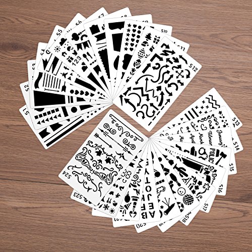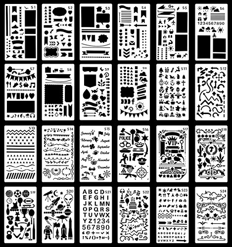 24 Pcs Bullet Journal Stencils Set for Journal / Notebook / Diary / Wood Burning / Carving / Scrapbook DIY Drawing Template,4x7 inch