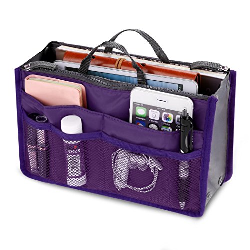 - Compact & protable design, this bag can keep your things organized well on the go travel. Top Oxford handles make it easy to lift your handbag Organizer in & out of your handbag.