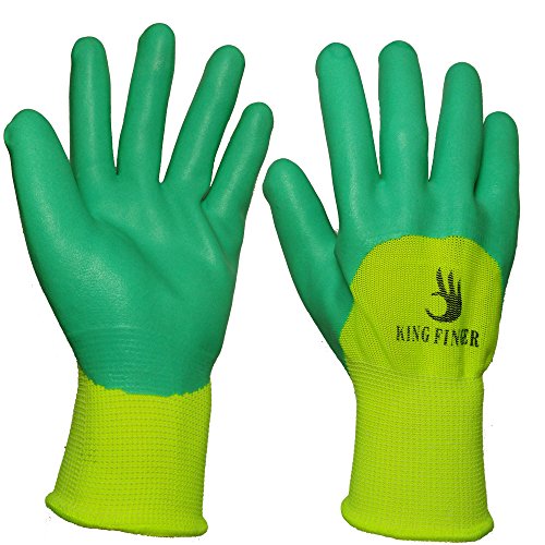 KINGFINGER Garden Gloves, Nitrile Work Gloves, One size fits most , special protective coating against cuts(green)