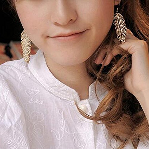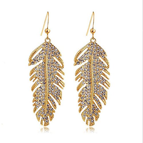 A&C Fashion Bohemia Gold Alloy Feather Dangle Earrings Jewelry for Women, Hot Sell Fashion Feather Eardrop for Girls.