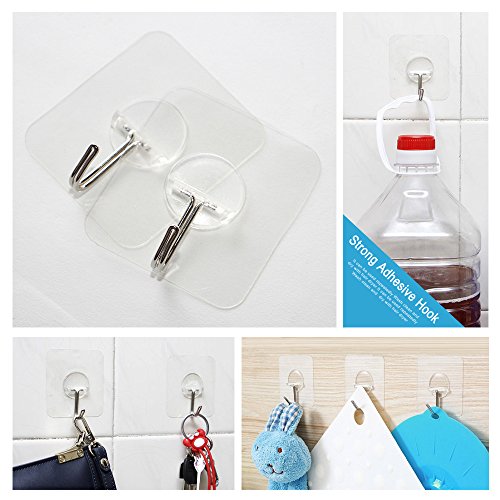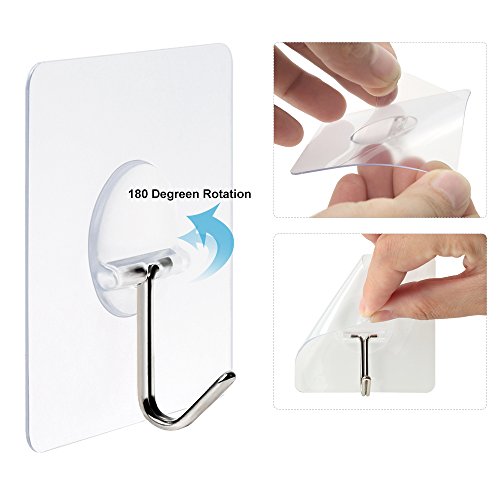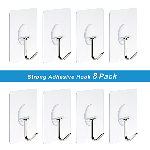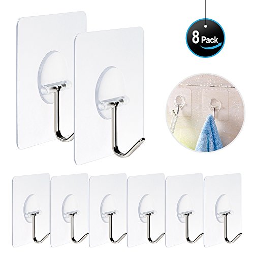 Heavy Duty Hooks 11 lb(Max) Adhesive Hooks Transparent Reusable Seamless Hooks No Scratch Hooks ,Waterproof and Oilproof, Super Load for Bathroom Kitchen - Pack of 8