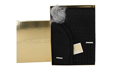 (Michael Kors)/Accessories/Scarves/DIRECT FROM USA/Michael Michael Kors Womens 2 Piece Knit Pom Hat and Scarf Set Fall 2017 Black