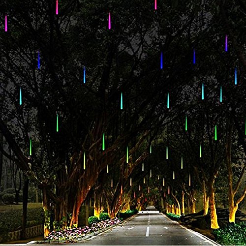 Security LED Meteor Shower Rain Lights, 30cm 8 Tube 144 LEDs, Drop/Icicle Snow Falling Rain Light for Wedding Xmas Home Decor (Multi Color)