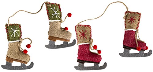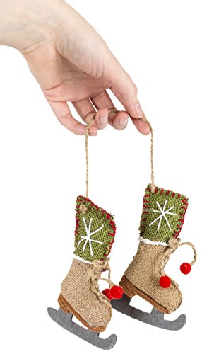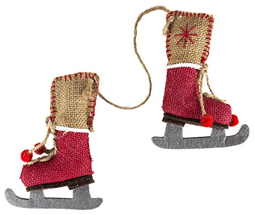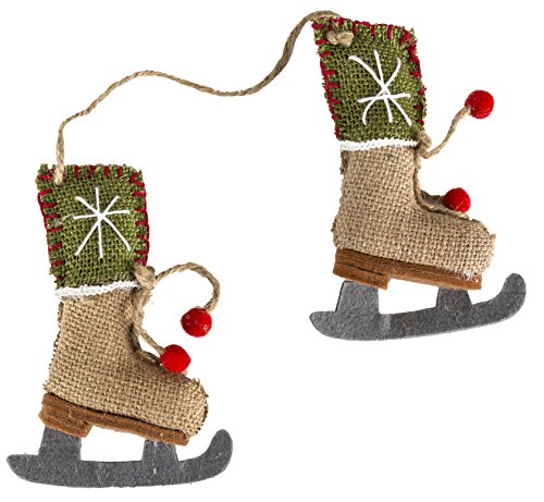 Darice Christmas Set of 2 Ornaments Burlap Skate Shoes 5.5 in