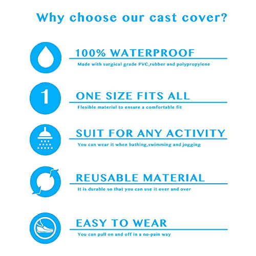 Eurybia Cast Cover is a completely waterproof patented protection for above-the-knee casts and wounds. Bathe, shower or even swim without worry of infection or damage to your cast or other wound. Reusable. Lasts the life of the cast. The innovative design assists in easy one hand application and free foot movement. The ring frame with stretchable diaphragm offers self-sealing mechanism. Moisture protection for plaster and synthetic casts, bandages, rashes, prostheses, splints, burns and lacerations. Specification: - Product Size: Length: 25 inches, fits most adults - Net Weight: 8.5 ounces (240g) 0 |