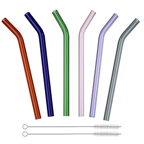 - Package include 6pcs 180mm * 8mm Bent glass straws on color Green , Orange , Purple , Pink , Grey , Blue and 2pcs 175mm Cleaning Brushes