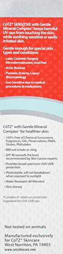Studio : Fallene, Ltd. Publisher : Fallene, Ltd. Binding : Health and Beauty Product Description Dermatologist recommended pure mineral sun protection specially formulated for ultra sensitive skin. CoTZ sensitive spf 40 moisturizing sunscreen lotion is cosmetically elegant and vanishes immediately upon application. Contains zinc - the #1 rated sunscreen ingredient. 0
