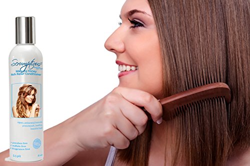 - Feature : SCRUMPTIOUS ITCHY SCALP CONDITIONER helps provides itchy scalp relief. 5.5 pH balanced. / YOU'LL LOVE THE WAY IT LOOKS & FEELS on your scalp and hair. Our certified organic lab is in the USA / ORGANIC ALOE, Manuka Honey, Coconut Oil. Sulfate Free, Paraben Free, Fragrance Free, Concentrated. / We never use harsh chemicals and potentially harmful poisons found in other shampoo and conditioners / Helps dry or oily hair, psoriasis, eczema, seborrheic dermatitis, hair loss, dry and itchy scalp.