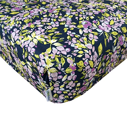 Bougainvillea Lilac and Navy Floral Fitted Crib Sheet - Fits Standard Crib Mattresses and Daybeds