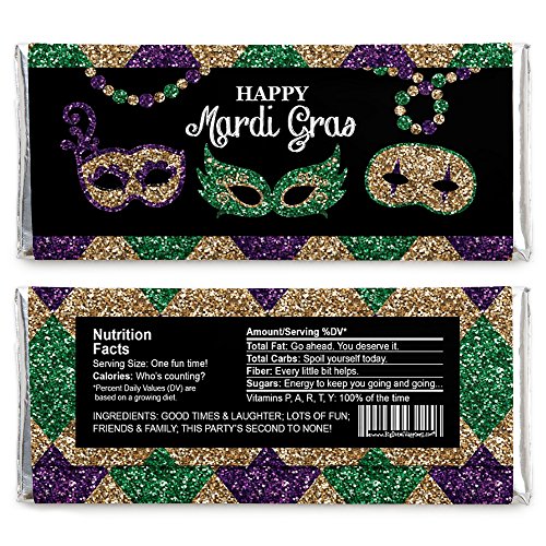 - Mardi Gras - Candy Bar Wrapper Masquerade Party Favors - Set of 24