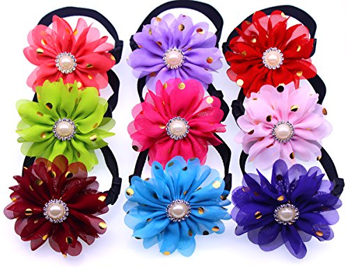 -. Feature : Made from high quality Nylon handmade flower, rhinestones and pearl / Designer pet collar features big daisy flower bow tie design, perfect for party costume, wedding & holiday gifts. / With a adjustable collar buckle, it was easy to wear and fit. / Designed as teaup dog collar, chihuahua dog collar, cat collar bowtie or cat collar with bow. / 2 sizes available, refer to our sizing chart in product picture. Sizing for each pet is unique. Please make sure measure your