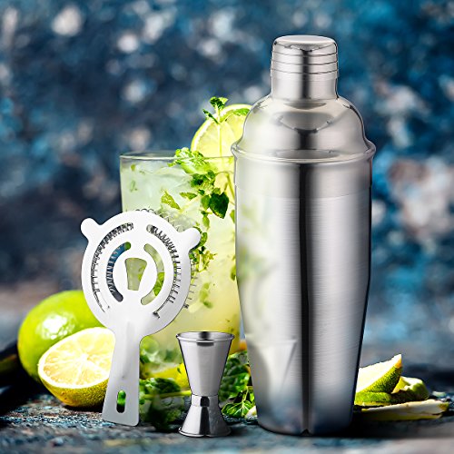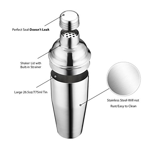 Atmoko Cocktail Shaker-Be Your Own Bartender Anytime and Anywhere! Make Cocktail Like a Expert With Atmoko cocktail shaker, you make many cocktail with your own creativity based on cocktail recipes from internet. Perfect Shaker Set Shaker makes mixing drinks a breeze and it holds up to 26.5 fluid ounces Dual measuring jigger: 1.4oz and 0.7oz. It helps you get liquors precise. Hawthorne Strainer for straining ice or fruit seeds out from glass, giving you smooth drinks. Great Christmas/Birthday Gift for Your Friend and Families Atmoko cocktail shaker is also a perfect gift for anyone who likes to drink mixed beverages or has a home bar. Specifications: Material of Shaker and Jigger: 304 Stainless Steel Shaker Dimensions: 3.31in*3.31in*9.65in (Max) Jigger Dimensions: 1.6*in1.6in*2.75in (Max) Shaker Capacity: 26.5oz/775ml Jigger Capacity: 0.7oz/20ml or 1.4oz/40ml Package included: Shaker x 1 Dual Measuring Jigger x 1 Hawthorne Strainer x1 All Atmoko cocktail shaker has 18-Month worry-free Warranty and 45-Day money back Guarantee. 0 |