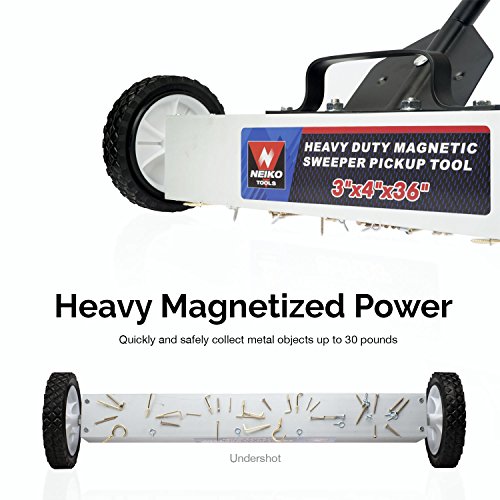 Neiko 53418A 36-Inch Magnetic Pick-Up Sweeper with Wheels | 30-LBS Capacity