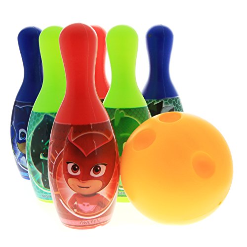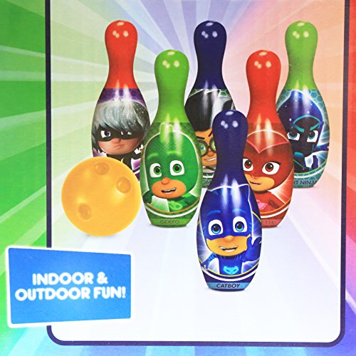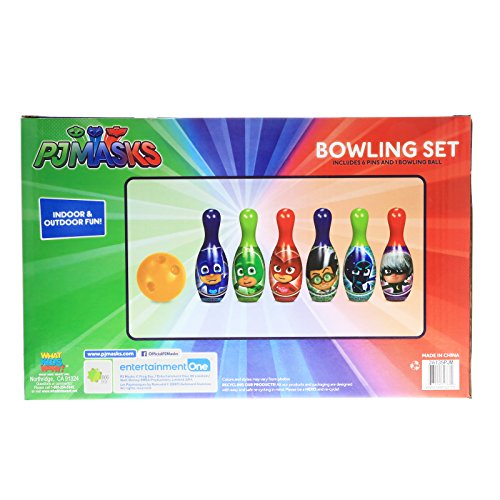 Studio : Disney Co. Publisher : Disney Co. Binding : Toy Product Description Watch your child throw strike after strike with this Disney Jr. Officially Licensed PJ Masks 6 Pin Interactive Play Bowling Set! This bowling set is a great way to keep your child entertained while playing alone or have tons of family fun bowling right from your home! Perfect for PJ Masks fans and practicing healthy competition and coordination skills.
