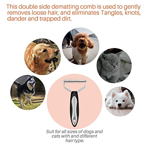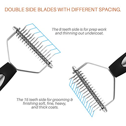DOUBLE SIDED GROOMING TOOL: Designed with 8 teeth side for prep work and thinning out undercoat and 15 teeth side for grooming & finishing soft, fine, heavy, and thick coats, allows you to remove the toughest knots, mats and tangles without hurting your pets.